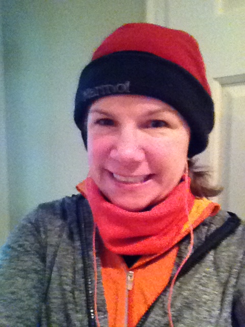 My 15 mile run was scheduled for a weekend when the wind chill was a chilly 5 degrees. I wore every layer I could think of: 3 tops, 2 pairs of pants, 2 pairs of socks, a hat, gloves, neck warmer and earmuffs.