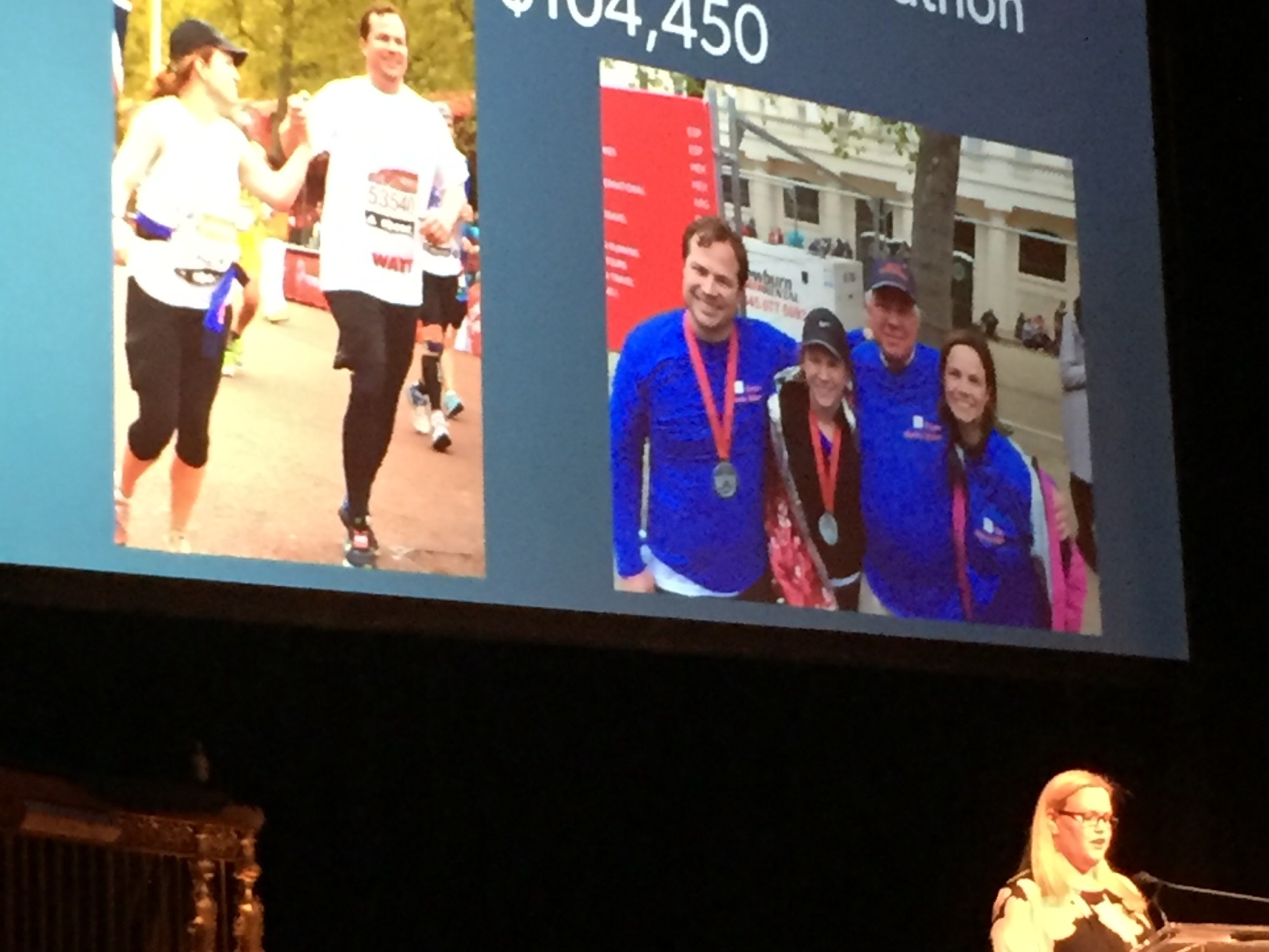 The absolute peak of the evening for us was seeing Team Merrie Miles acknowledged as one of the top Team Fox fundraisers in 2015. It took my breath away to see our pictures up on the big screen with our fundraising total. 2015 was our first six-figure fundraising year, which is a tribute to all of the amazing supporters who backed us on this journey. I wish you could have been there with us to share the moment. It simply wouldn’t have happened without you.
